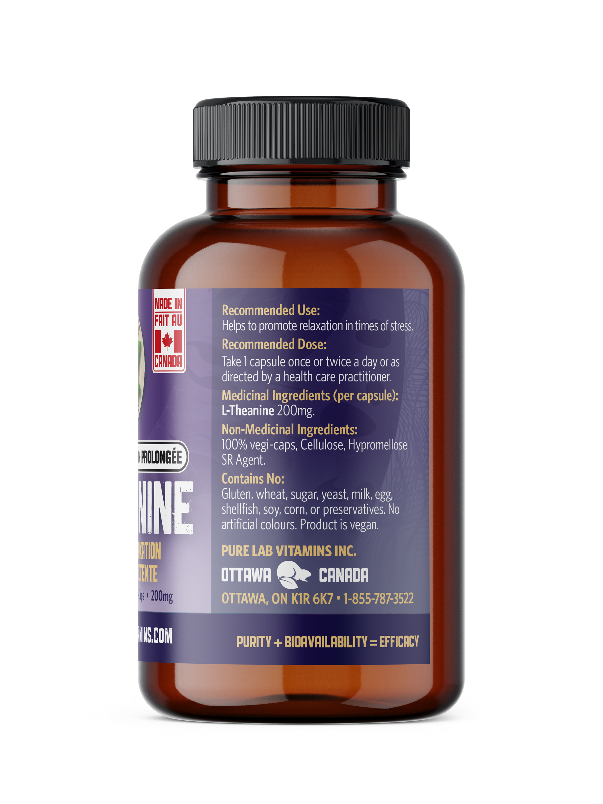 Pure Lab Vitamins - L-Theanine Slow Release - 60 Veg Capsules - NPN: 80072701